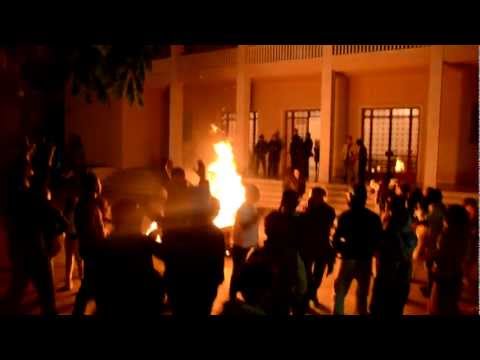 Οι Ρομά κατά την διάρκεια της εξέγερσής τους έξω από το Δικαστικό Μέγαρο έκαψαν παλέτες και στρώματα φώναζαν συνεχώς «θέλουμε δικαιοσύνη» και «όχι άλλο ρατσισμός»